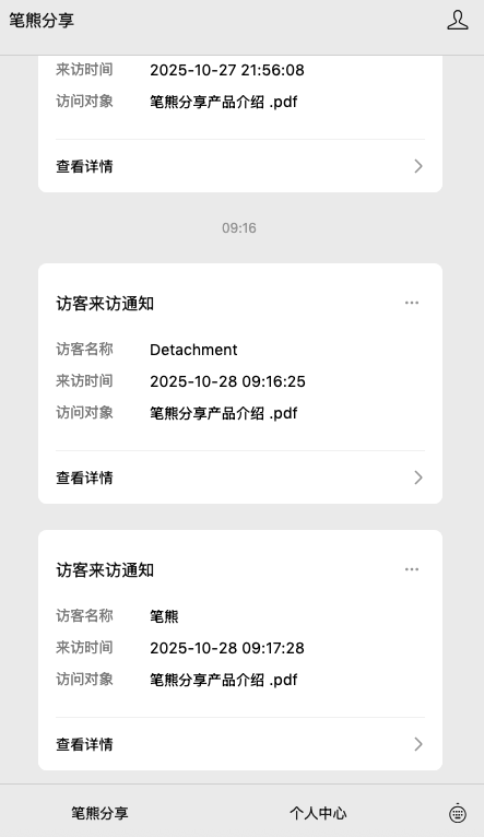 绑定「笔熊分享」公众号 → 有人首次/再次访问立即推送