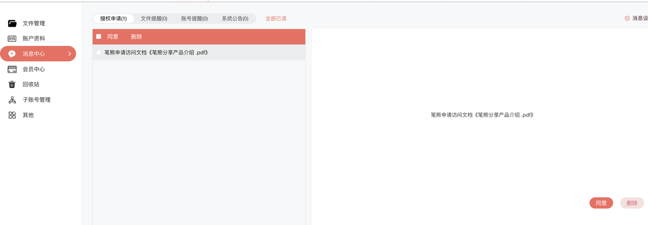 文件设为「申请授权」→ 访客提交申请 → 公众号实时推送
