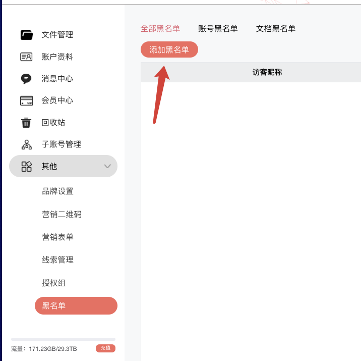 全网封禁 → 个人中心 → 其他 → 黑名单 → 添加