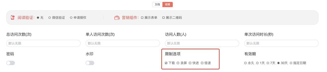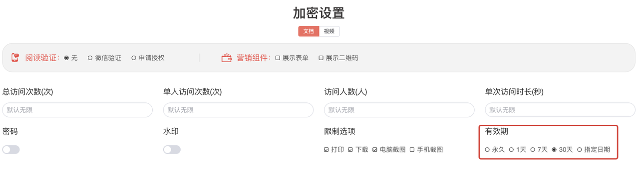 3. 文档或视频有效期设置