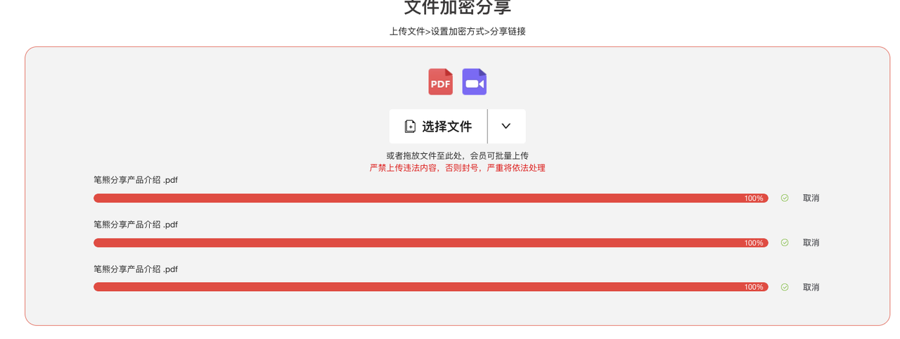会员专享:上传页一次可选多个文件,加密参数统一设置 → 一键生成全部链接/二维码
