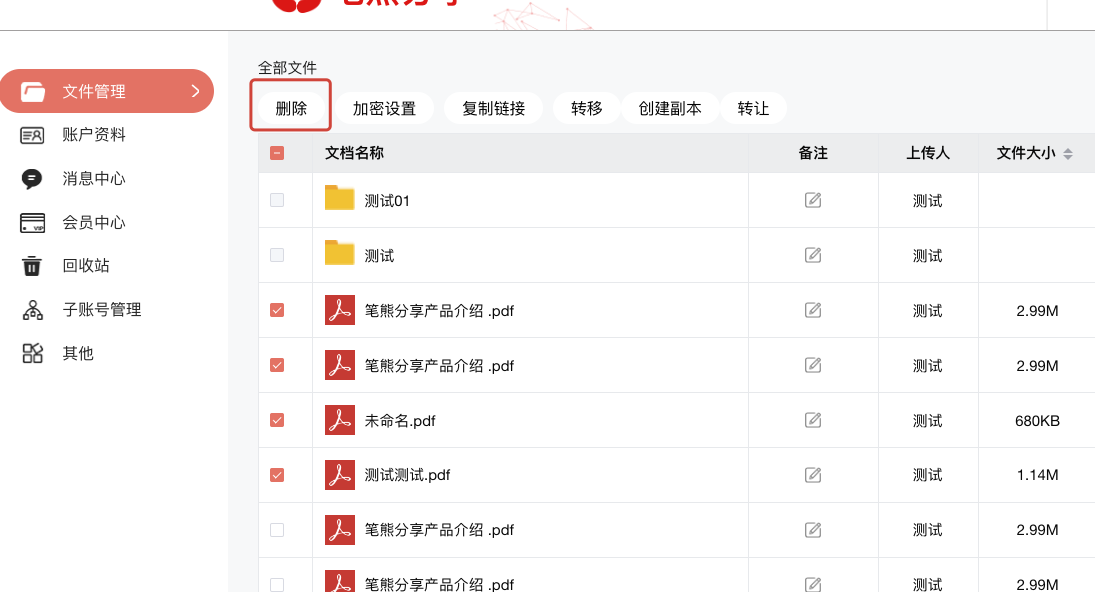 「勾选 → 顶部按钮」一次搞定上传、链接、加密、删除,省时省力。