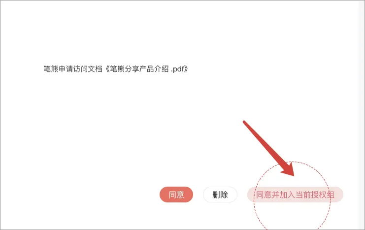访客申请后 → 点 同意并加入授权组 → 该用户瞬间获得组内所有文件访问权