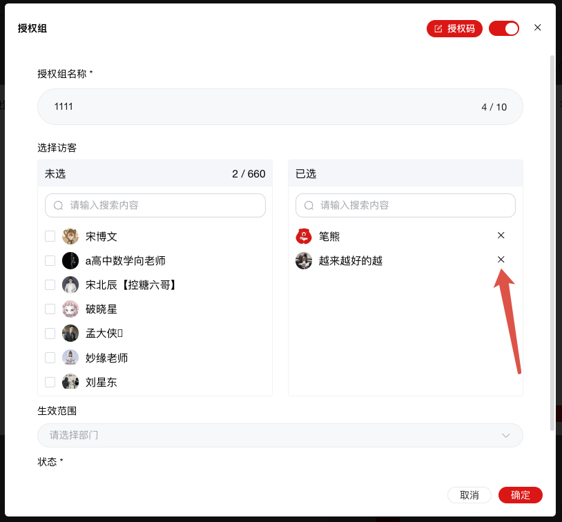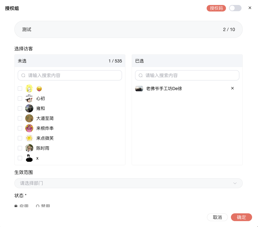 - 实时增减授权组 / 单个访客