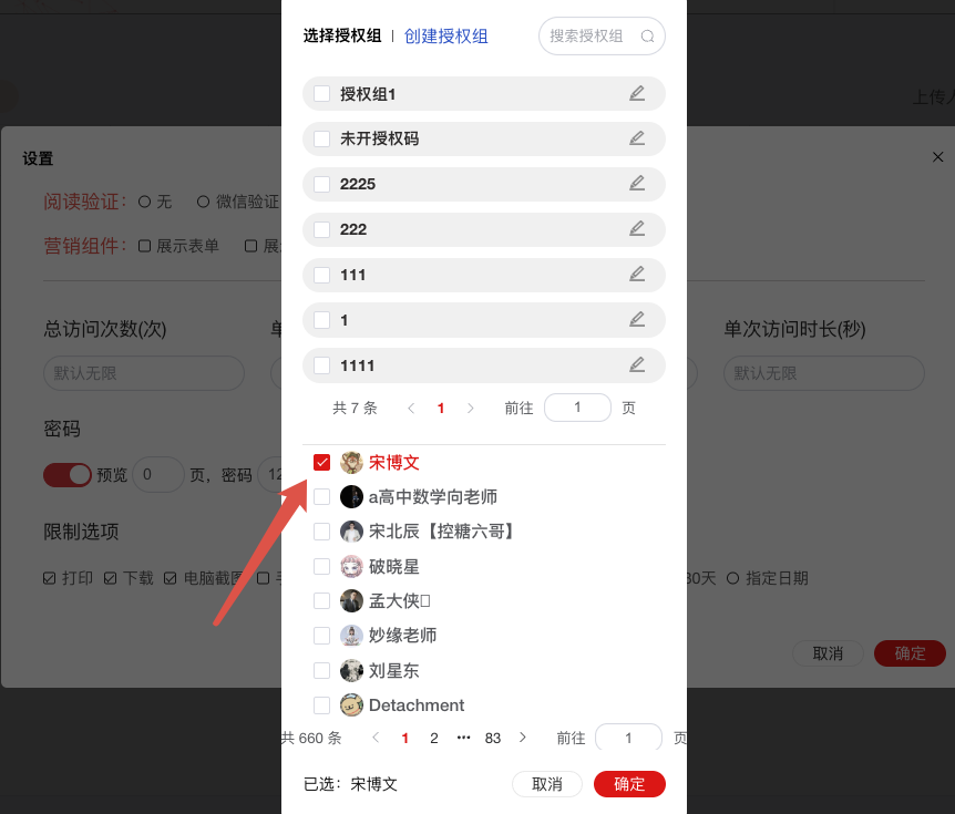 ③ 群文件设置指定人查看,禁止转发