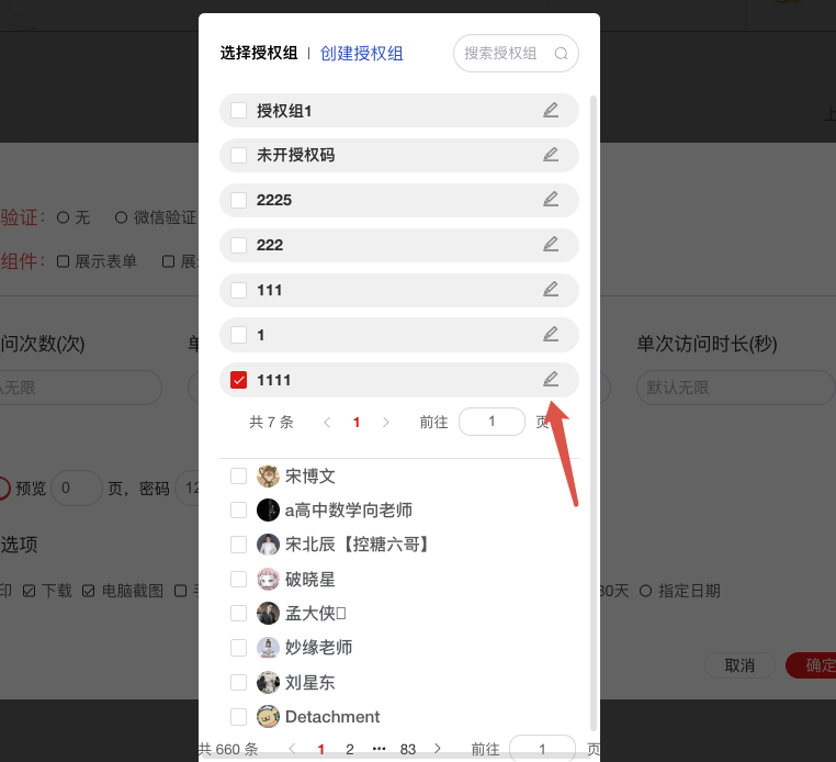 新建 / 修改授权组 → 勾选 授权码