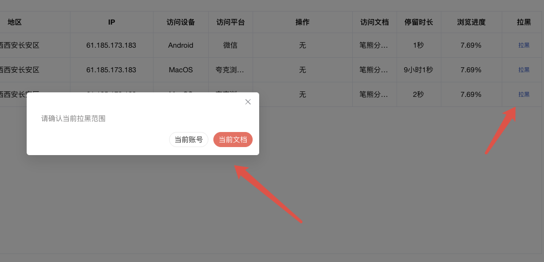 - 当前账号:禁止访问账号下所有文档
