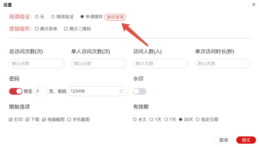 - 笔熊分享:限制打开次数 / 有效期 / 水印 / 防下载