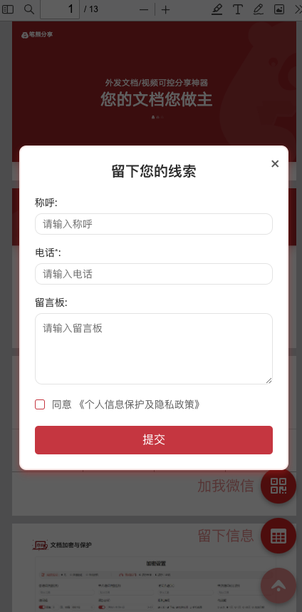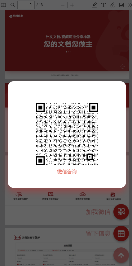 - 访客打开文件 → 右下角悬浮 专属二维码(可跳转官网 / 加群 / 领券)
