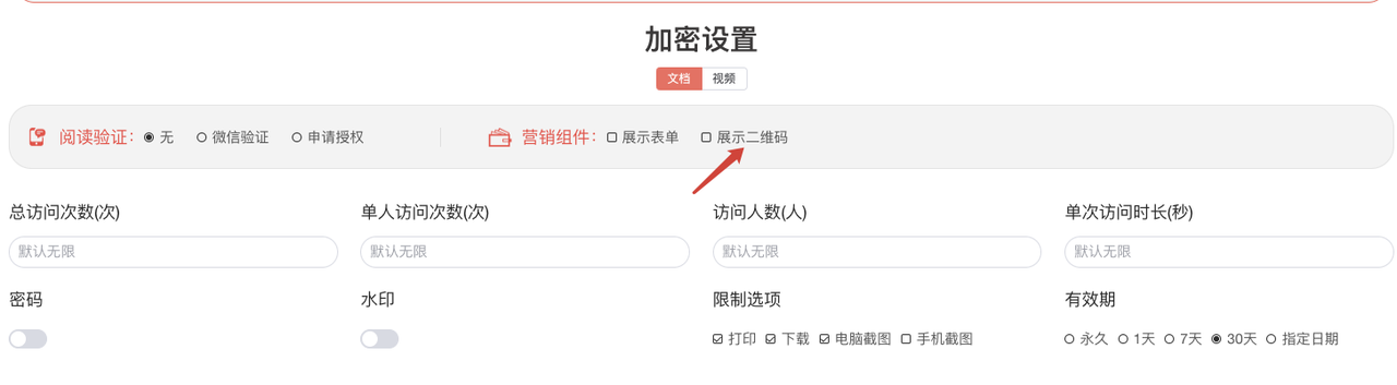 - 加密时勾选「营销二维码」