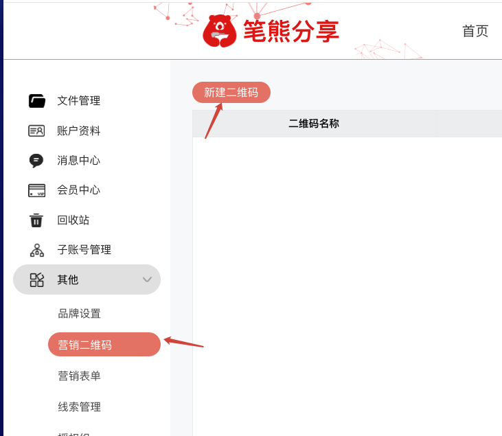 - 其他 → 营销二维码 → 新建 → 上传/生成